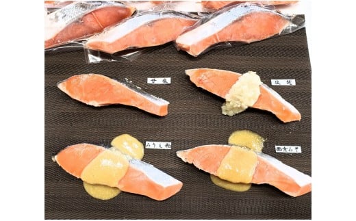 銀鮭甘塩切り身、銀鮭西京味噌漬け切り身、銀鮭塩糀漬け切り身、銀鮭みりん粕漬け切り身各2切れ