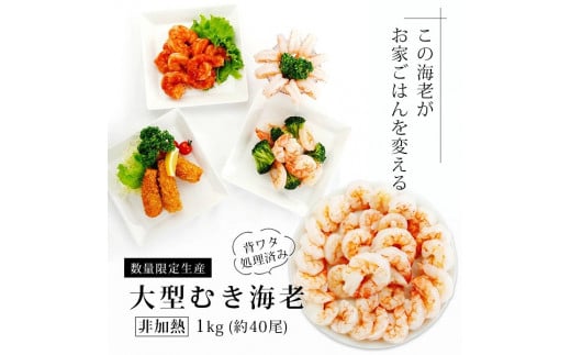 背わた処理済 大型バナメイエビ(むきえび) 1kg(約40尾)・K232-13 海老 海鮮 食品 むき海老 海老フライ エビチリ 海老チャーハン
