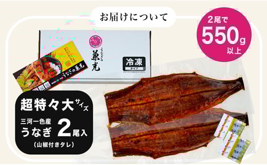 愛知県三河一色産 うなぎ蒲焼き 無頭 超特々大サイズ2尾(計550g以上)・U036-20 国産 愛知県産 西尾市産 三河一色産 うなぎの兼光 鰻 ウナギ 惣菜 総菜 おかず グルメ 食品 タレ付き 頭無し