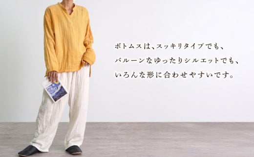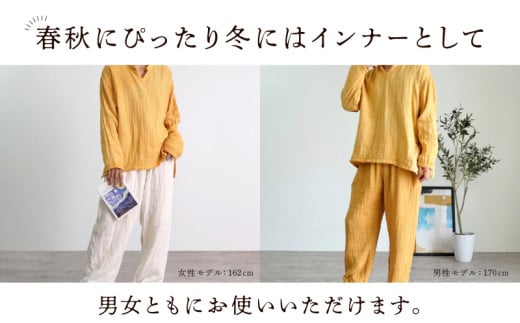 春秋にぴったり冬にはインナーとして男女ともにお使いいただけるガーゼトップス
