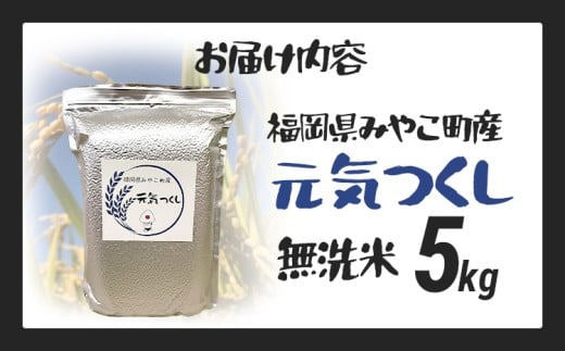 7. 福岡県 みやこ町産 元気つくし (無洗米) 5kg 【期間限定】 米 チャック付き チャック 防虫 ごはん おにぎり おやつ 福岡県 福岡 九州 グルメ お取り寄せ