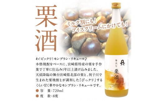 本格焼酎をベースに、宮崎県特産の栗を手作業で丁寧に仕込み1年以上漬け込みました。