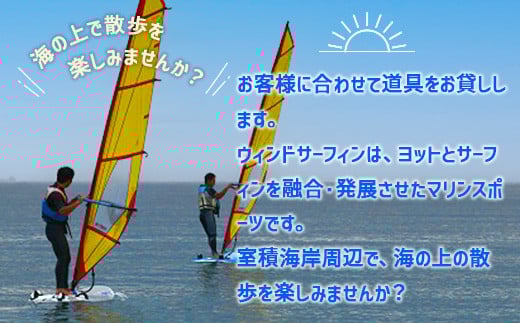 ウィンドサーフィンのレンタル4時間(ボード一式及びウェットスーツ等のレンタル、シャワー使用料などすべて含む)