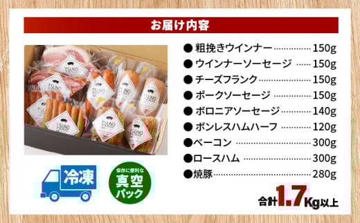 都農ファーム厳選「ウインナー・ハム9点セット」合計1.7kg以上 肉 豚 豚肉 おかず 国産_T020-0021