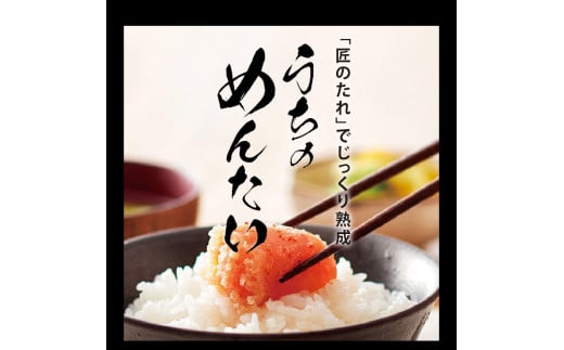 匠のたれで168時間じっくりと漬込み熟成させ生まれる絶妙な味わい。「やまやの辛子明太子」切子込です。