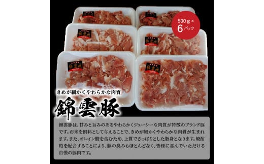 やわらかくて甘い最高級の肉質。ブランド豚肉「錦雲豚」切り落とし3kgセット