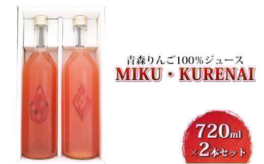 青森りんご100%ジュース「MIKU・KURENAI」720ml×2本セット