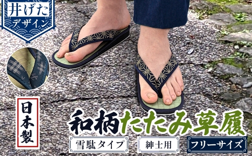職人の手作業で作った本畳を使用した和柄草履 紳士用雪駄(せった)タイプ