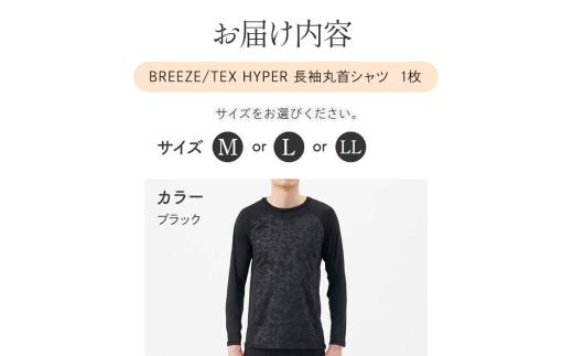 <期間限定>BREEZE/TEX HYPER 長袖丸首シャツ ブラック(ブラック、Lサイズ・1枚) 【m84-05-L】【アズ】