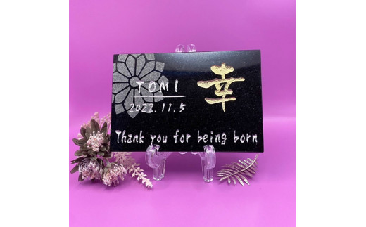 【誕生記念、出産祝いに】黒御影石 オリジナル命名プレート