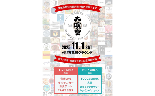 KARIYA 大演会は、令和7年度の市制施行75周年イベントとして開催する西三河最大級の屋外音楽フェスです。