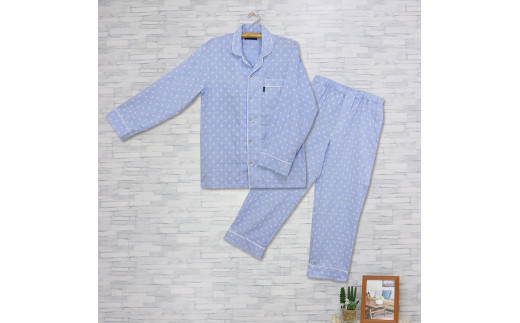 22-36 オーガニックコットンWガーゼイカリJQメンズパジャマ【播州織使用】 サックス・Lサイズ