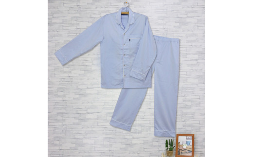 7. 27-9 サテンドビー無地メンズパジャマ【播州織使用】サックス・Lサイズ