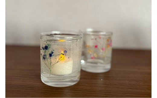 ロスフラワーで作る、かすみ草のキャンドルホルダー 【ピンク&イエロー】