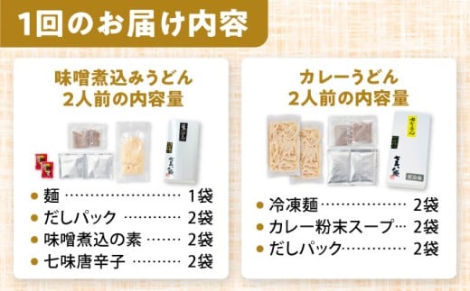 【12回定期便】 味噌煮込みうどん&カレーうどんセット 計4人前×12ヵ月 うどん カレー 名古屋名物 七五八庵 愛西市 / アロマ・フーヅ [AEAP029]