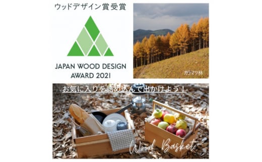 信州朝日村産 カラマツ材を使用し、サステナブルな社会に向けたエコバスケットです。