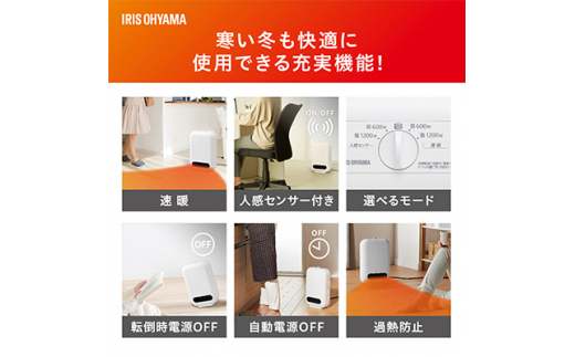 6. ヒーター 小型 人感センサー ホワイト JCH-127D-W セラミックファンヒーター コンパクト 電気 節電 軽量 安全 ファンヒーター オフィス トイレ アイリスオーヤマ