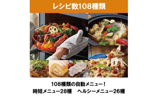 時短ブースト機能搭載!過熱水蒸気でヘルシー調理可能なワイドフラットスチームオーブンレンジです。高火力「速暖遠赤ツインヒーター」を搭載し、高火力の石英管トリプルヒーターが庫内を速暖します。高性能のタンク式過熱水蒸気を採用しており、タンク内の水をピンポイントで加熱し水蒸気を発生させます。沸騰から水蒸気となるまでのスピードが段違いに早いためスチーム力は最大限に発揮します。中は「カリっと」外は「フワっと」を実現。ヘルシー料理はもちろん、肉や魚はジューシー、ケーキも上手に焼き上げます。また、「時短ブースト」機能を搭載しており、出力と時間をセットして「時短」ボタンを押すと自動で出力が上がり温め時間を短縮してくれます。時間が無いときや、早く食べたいときに便利な機能です。総レシピが108種類あり、うち時短レシピ28種類、ヘルシーレシピ26種類と充実しています。
