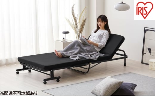 ベッド 折りたたみベッド OTB-TRR ブラック アイリスオーヤマ シングル コンパクト マットレス付き 低反発 簡易ベッド 折り畳み リクライニングベッド 14段階 手動 介護