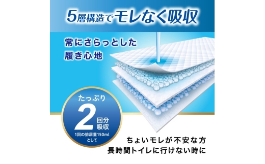 2回吸収タイプで、ちょいモレが不安な方や長時間トイレに行けない時に便利です。