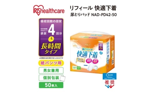【50枚入り×2パック】大人用 パッド リフィール 快適下着用 尿とりパッド 4回吸収 50枚入 NAD-PD42-50 尿取りパッド 尿とりパッド 超薄型 スピード吸収 消臭 リハビリ 旅行 快適下着 リフィール アイリスオーヤマ