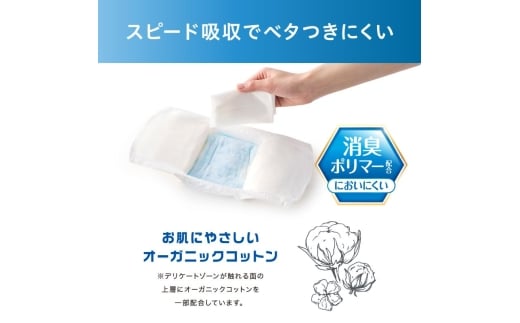 デリケートゾーンが触れる面の上層にオーガニックコットンを一部配合し、お肌にやさしくなっています。