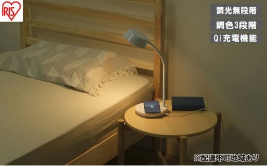 LEDデスクライトQi充電シリーズ 平置きタイプ 調光・調色 LDL-QFDL-W ホワイト デスクライト LED 調光 調色 ワイヤレス充電 おしゃれ アイリスオーヤマ コンパクト 折りたたみ式 Qi充電 勉強 テレワーク