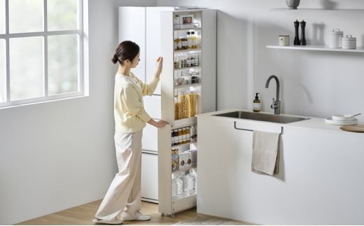 便利なボックス型収納が2か所あり、消耗品のストックやデスク周りなど、キッチン以外にも空間・隙間の有効活用におすすめです。