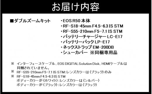 ※RF-S18-45mm F4.5-6.3 IS STMは、ボディーカラーが〈ホワイト〉のキットの場合のみ、レンズカラーは〈シルバー〉となります。ボディーカラーが〈ブラック〉の場合、レンズカラーは〈ブラック〉となります。