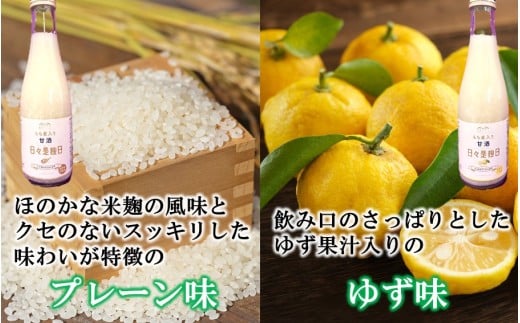 国東産米100%使用 もち麦入りノンアルコール米麹甘酒「日々是麹日」 プレーン味・ゆず味 300ml×各1本(計2本)