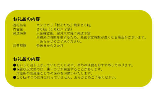 「新しい村」で丹精込めて育て上げたコシヒカリ「村そだち」です。