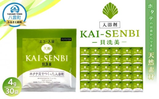 ホタテの貝殻からできた入浴剤 貝洗美4g×30袋【 入浴剤 粉末 天然素材 入浴 お風呂 風呂 お家時間 おうち時間 バスタイム バス用品 日用品 八雲町 北海道 】