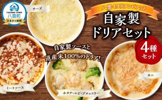 北海道 ピアット自家製ドリアセット4種 (チーズ、ミートソース、カニ、ホタテ・エビ・ブロッコリー)【 レンジ 温めるだけ 冷凍 冷凍食品 調理済み お手軽 簡単 調理 簡単調理 食卓 ランキング 冷凍食品 おうちごはん 八雲町 北海道 】