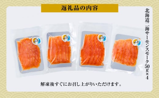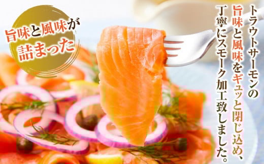 北海道二海サーモンスモーク200g(50g×4) 【 サーモン サーモントラウト 魚 海鮮 魚介 魚介類 海産物 小分け パック 冷凍 食品 お取り寄せ グルメ 八雲町 北海道 】