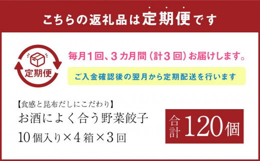 【食感と昆布だしにこだわり】 【3回定期便】お酒によく合う野菜餃子40個(10個×4箱)【 餃子 加工品 冷凍 おつまみ つまみ 定期便 食品 グルメ お取り寄せ お取り寄せグルメ 八雲町 北海道 】