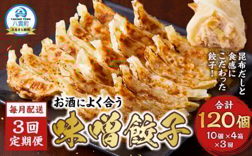 【食感と昆布だしにこだわり】 【3回定期便】お酒によく合う味噌餃子40個(10個×4箱)【 餃子 加工品 冷凍 おつまみ つまみ 定期便 食品 グルメ お取り寄せ お取り寄せグルメ 八雲町 北海道 】
