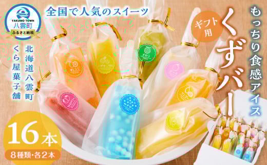 【ギフト用】もっちり食感アイスくずバー 8種類 各2本(合計16本) 【 アイス お菓子 菓子 おかし スイーツ デザート 食品 グルメ お取り寄せ 】
