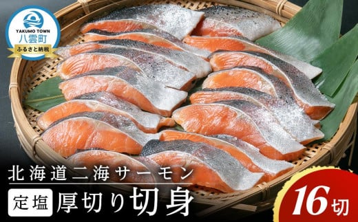 北海道二海サーモン 定塩 切身 厚切(4切×4袋) 合計16切 【 トラウトサーモン 北海道産 養殖サーモン 海産物 魚介類】