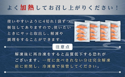 北海道二海サーモン 切身 定塩(4切×4袋)