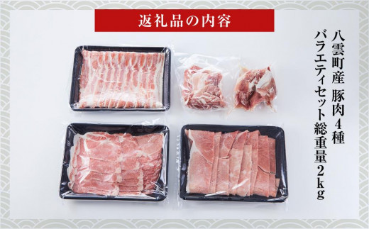【総重量2kg!】北海道八雲町産 豚肉4種 バラエティセット 【 肉 にく ニク 豚肉 豚肉セット 冷凍豚肉 国産豚肉 北海道産豚肉 道産豚肉 簡単 お手軽 小分け こだわり豚肉 豚肉グルメ 八雲町 北海道 】