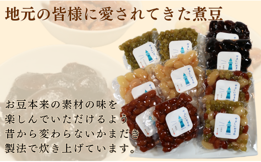 やさしいおまめ 合計 10個セット 5種類 × 2袋 (1袋160g) 煮豆 豆 お豆 豆 金時豆 うぐいす豆 茶花豆 三色豆 白花豆 えんどう豆 詰合せ 詰め合わせ セット 種類 個包装 小分け ギフト 贈り物 贈答 千葉県 銚子市