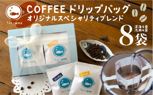 珈琲ドリップバッグ 8袋 (各種4袋×2) オリジナルスペシャルティブレンド コーヒー 自家焙煎 珈琲 ドリップバッグ ブレンド ブレンドコーヒー 焙煎 コク 深み ブラジル コロンビア エチオピア インドネシア お取り寄せ 高級 スペシャリティ グルメ ギフト 贈物 贈答 プレゼント お歳暮 お中元 祝い セット 常温 長期保存 送料無料 ふるさと納税 千葉県 銚子市 港乃珈琲店