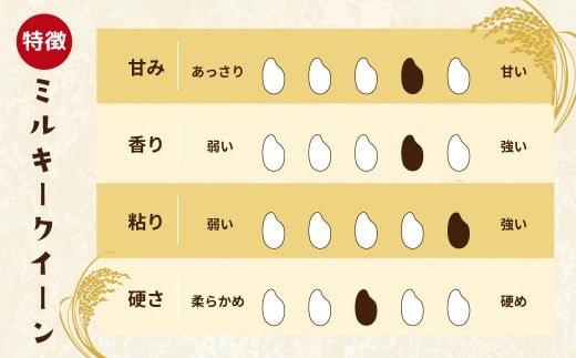 粘りが強く、モチモチふっくらとした触感で、冷めても硬くなりにくいミルキークイーン