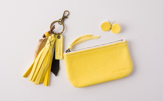 7. AN15  鹿革コレクション「生きた証」蒲公英 3点セット 【 ポーチ タッセル チャーム 鹿革 革製品 小物入れ 小銭入れ カードサイズ オーガニック 蝶 チョウ 手作り タンポポ たんぽぽ 黄色 イエロー 】