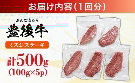 6. 【全3回定期便】【厳選希少部位】おおいた豊後牛 ミスジステーキ 約500g(100g×5P) 日田市 / 株式会社MEAT PLUS 牛肉 おおいた豊後牛 おおいた 豊後牛 黒毛和牛 ステーキ 国産 みすじ ミスジ ミスジステーキ 希少部位 希少 [AREI110]