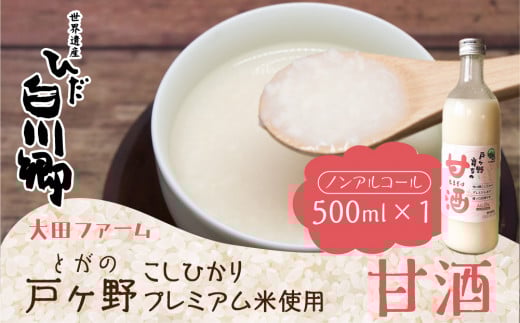 白川郷産 こしひかり使用 甘酒 500ml×1本 あま酒 あまざけ ノンアルコール 戸ヶ野 こしひかり 大田ファーム 米麹 岐阜県 白川村 5000円 [S430]
