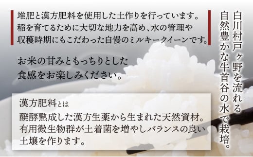 白川村の豊かな自然の中で土作りからこだわって育てた自慢のミルキークイーンです!
