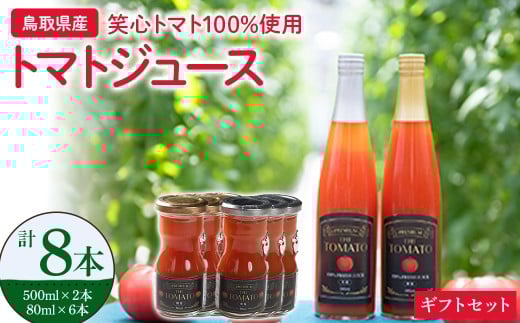 トマトジュース有塩500ml×1本、トマトジュース無塩500ml×1本、トマトジュース有塩80ml×3本、トマトジュース無塩80ml×3本