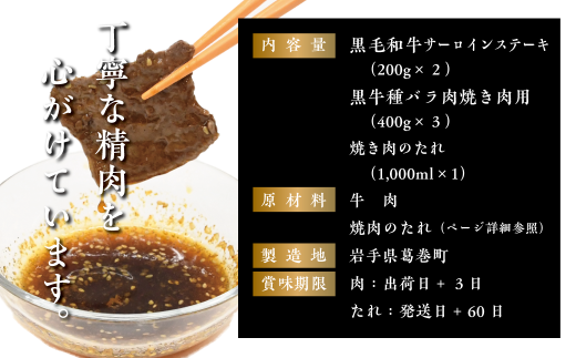 FU20 \くずまき高原牧場/ くずまき高原黒牛セット サーロインステーキ・焼肉用バラ肉詰め合わせ【1231742】