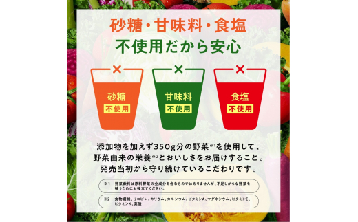 彩り豊かな30品目の野菜350g分を使用した野菜100%のミックスジュースです